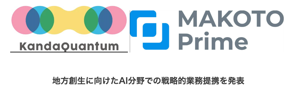 「協創の基盤を創る」をミッションとし、Gen-AI(生成AI、ジェネレーティブAI)や量子技術を活用したクリエイティブ集団であるKandaQuantum (本社:東京都千代田区、CEO:元木大介)は、東北復興&エコシステム構築の中心的存在として地方企業の課題解決を支援する株式会社MAKOTO Prime(本社:宮城県仙台市、代表取締役:竹井智宏)と、AIを活用した地方企業の課題解決に取り組み、地方でのAIの活用推進を目指し、戦略的業務提携を行うことを発表しました。