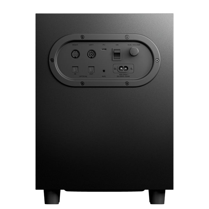 迫力のサウンドを実現する4 inchドライバーを搭載したスピーカー4基、センターチャネルスピーカーに加え、ダウンファイアリングサブウーファーの組み合わせにより完璧な360°空間オーディオを実現します。