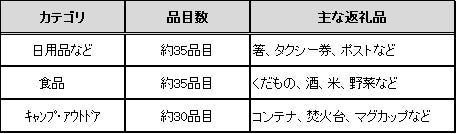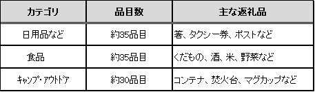 ●三条市の強みであるアウトドア製品だけではなく、日用品、食品やタクシー利用券など多種にわたる返礼品を取り揃えている