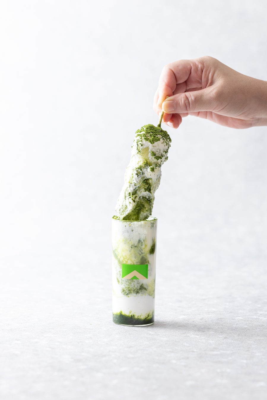 「MOCHIスティック MATCHAティラミス」はもちもちのお団子とクリーミーな抹茶ティラミスがワンハンドで楽しめる贅沢なモチスイーツです。卵を使っていない爽やかなオリジナルマスカルポーネソースが濃厚な抹茶とベストマッチ。