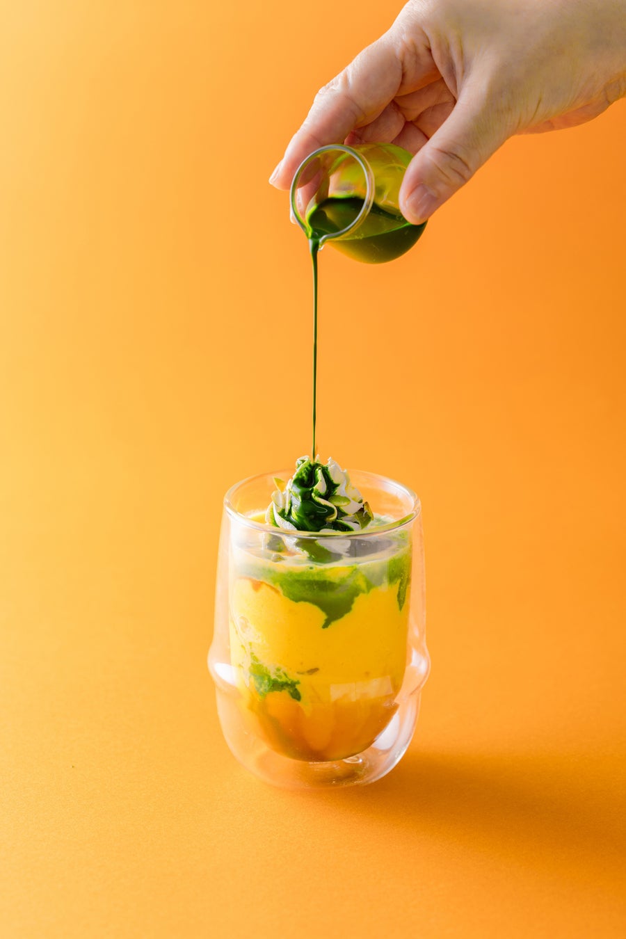 みんなが大好きな日本のクラシックスイーツ・プリンアラモードをMATCHAシェイクにアレンジしました。甘酸っぱいいちごとバニラ、カスタードプリンを抹茶と楽しむ贅沢なごちそうMATCHAドリンクです。ぷるぷるのカスタードプリンの上にいちごシェイクを注ぎ、ホイップクリームといちご丸ごと1個をトッピング。仕上げにキャラメルソースをたっぷりかければ、ドリンクで楽しめるMATCHAプリンアラモードの完成です。特製濃茶ソースをたっぷりかけてお召し上がりください。