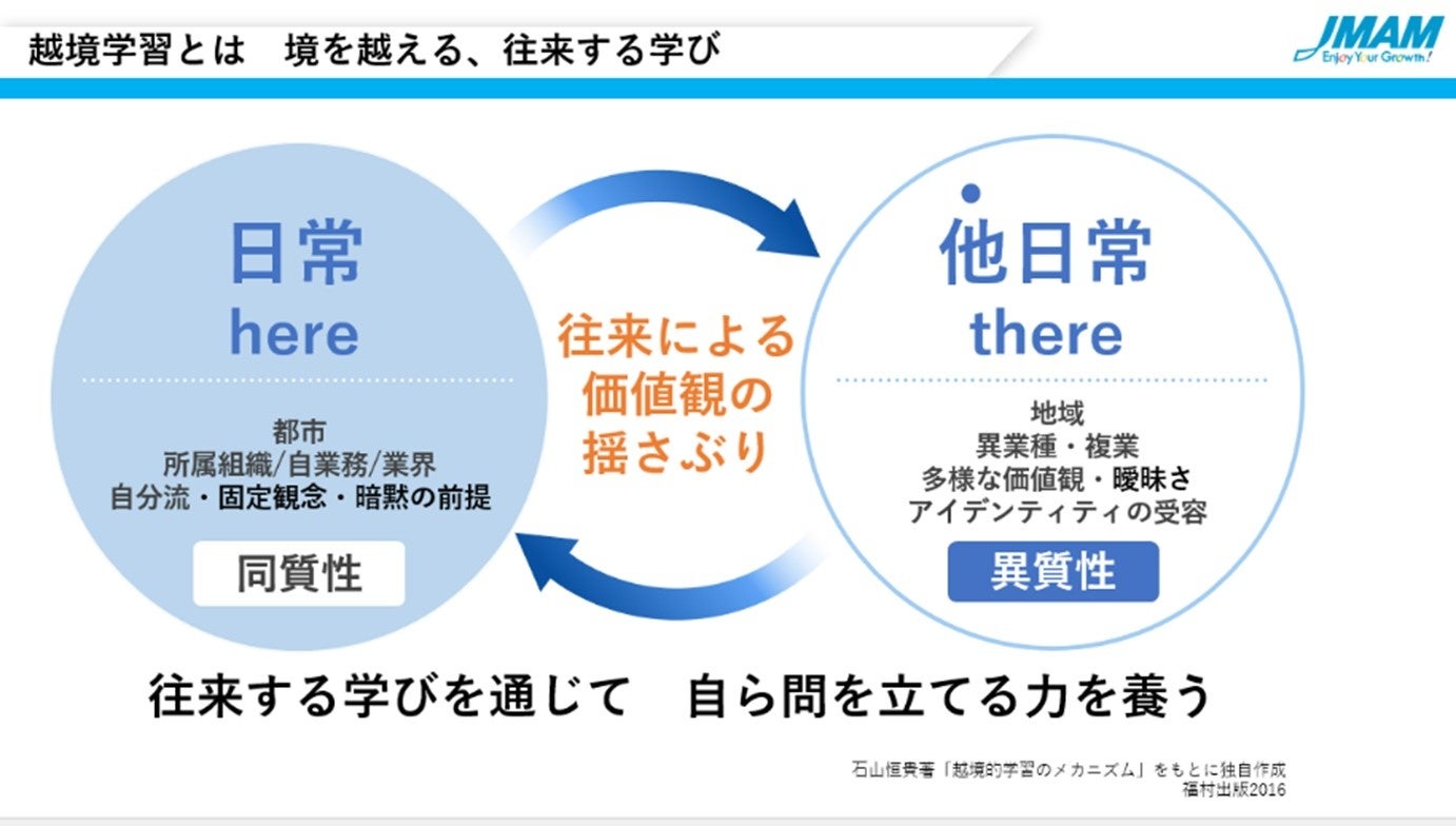JMAMは、企業向け人材育成プログラム『ラーニングワーケーション』として、越境学習の考え方をもとに、イノベーティブな人材の成長を支援する新しいプログラムを展開中です。