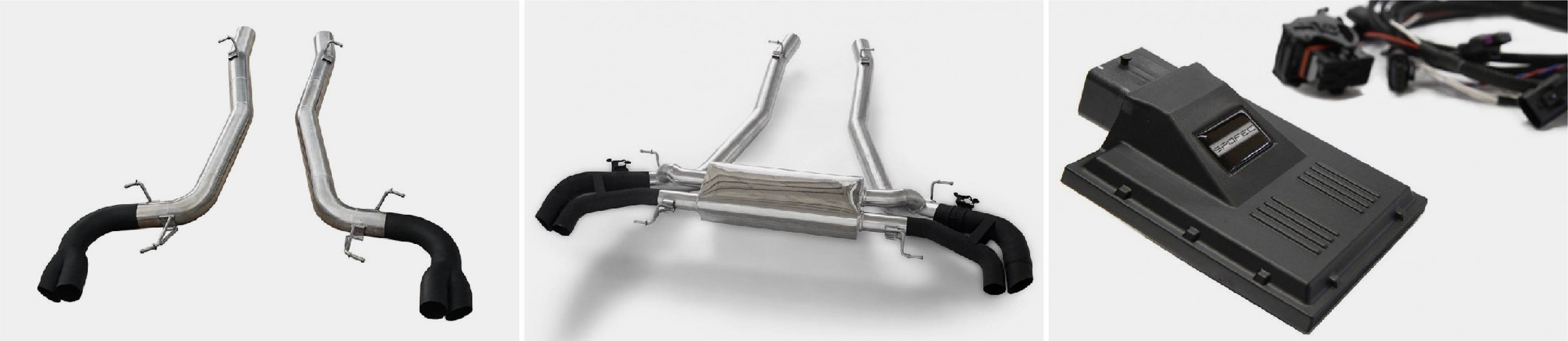 SPOFECリアパネルは、エキゾーストテールパイプのカットアウトの有無が選択でき、トランクの繊細なリップスポイラーと相まって、スポーティなアップグレードを際立たせています。