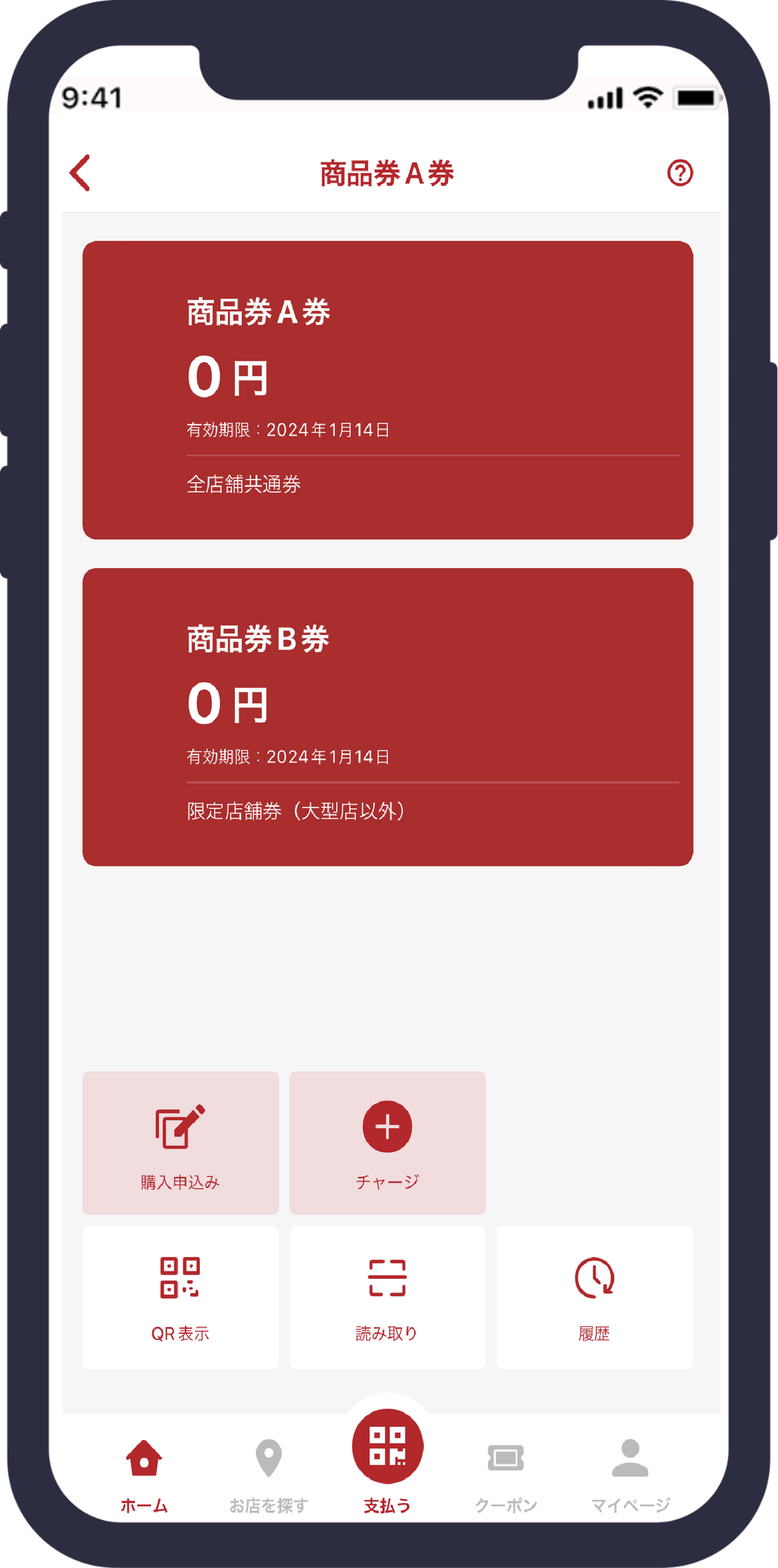 スマートフォンアプリもしくは紙カードのどちらかを選択することができ、事前の申し込みおよび購入(チャージ)を経て、利用者のアプリまたはカードに表示されている二次元コードを加盟店が読み取ることで利用することができます。