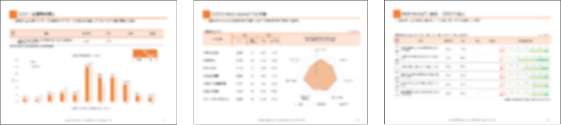 エントリー組織へは複数のレポートを納品いたします。レポートには自社の回答結果だけではなく、国内平均やHPBなど自社の特徴を分析するための様々な情報が含まれます。