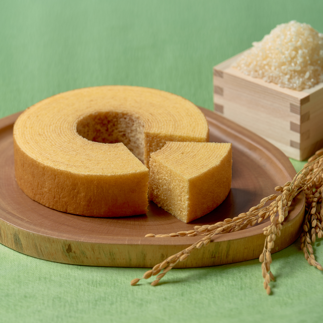 岐阜県産「龍の瞳」の米粉と岐阜県産の卵を使用したふんわりとした食感とお米の甘みを感じられるバウムクーヘンです。外側にはフォンダン(砂糖)を不使用で、生地の味そのままに味わっていただけます。