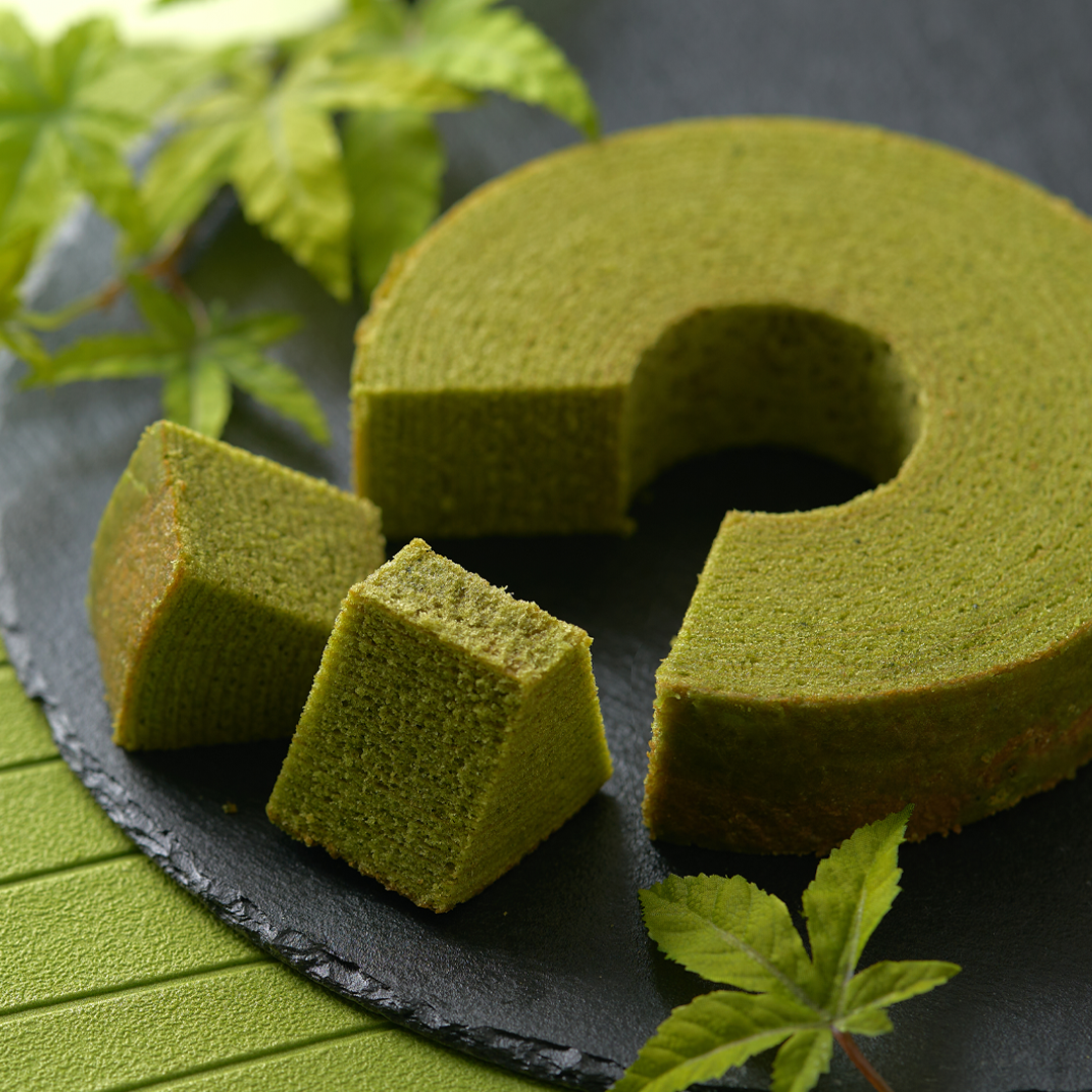 茶道やお茶会で使用されるような香り高く渋みの少ない抹茶を使用し、しっとり、ふんわり焼き上げたバウムクーヘンです。ひとくち食べると抹茶の上品な香りがふわっと広がります。仕上げにフォンダン(砂糖の衣)をほどこし、シャリっとした食感と、甘さのアクセントをお楽しみいただけます。