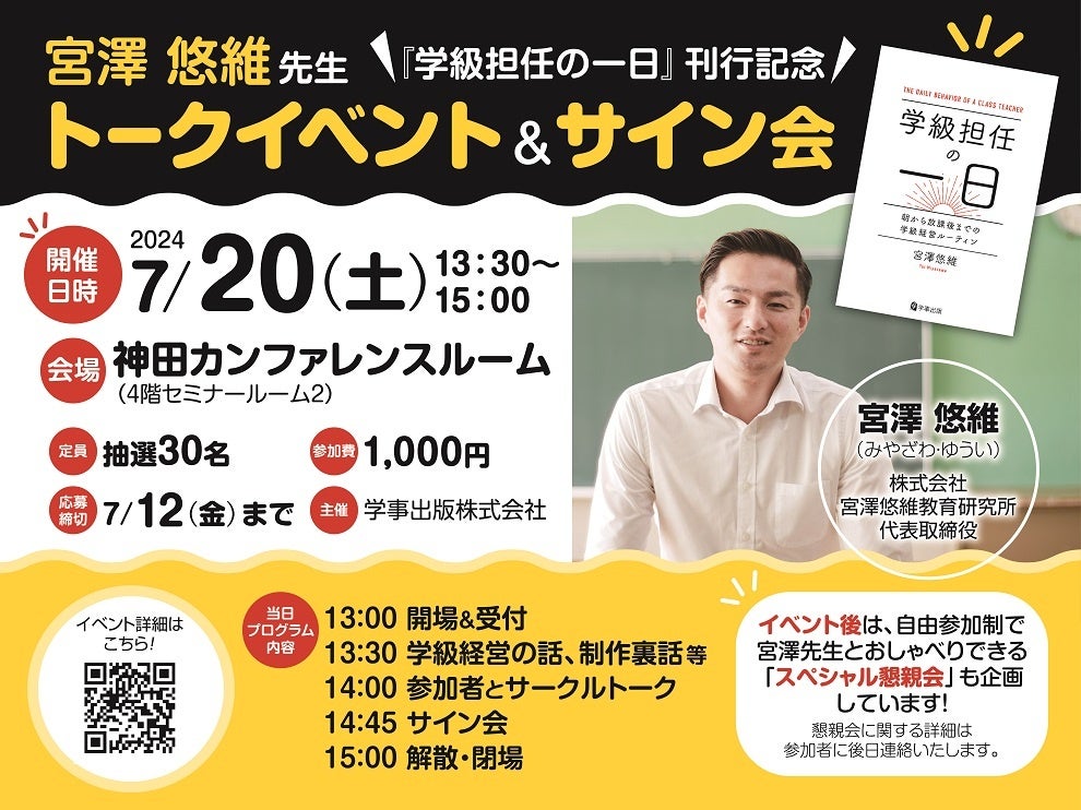 宮澤悠維先生最新刊『学級担任の一日』刊行記念!30名限定トークイベント&サイン会開催決定@東京・神田【2024/7/20(土)】