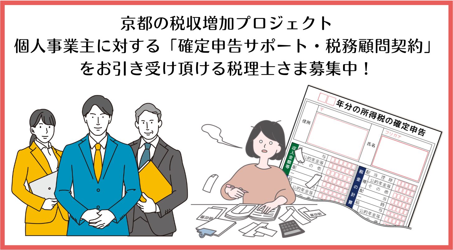 税理士募集「京都へ納税したい多数の個⼈事業主」に対する【確定申告サポートおよび顧問契約】をお引き受け頂ける税理士様を募集しています