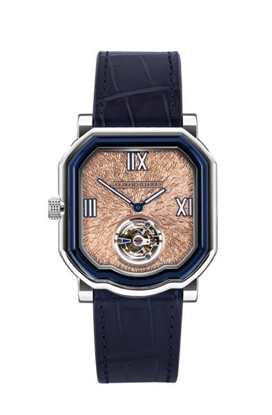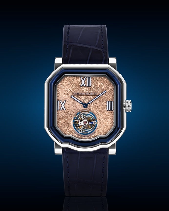 他のジェラルド・チャールズの作品と同様、この作品を際立たせているのは、質感のある文字盤、アリゲーターストラップ、フライングトゥールビヨンなどのディテールであり、エレガントでありながらスポーティなタイムピースであることを物語っています。コンテンポラリーでありながらクラシックなスタイルの風格を同時に漂わせるMétier d’Art(メティエ・ダール)を表現しているのです。