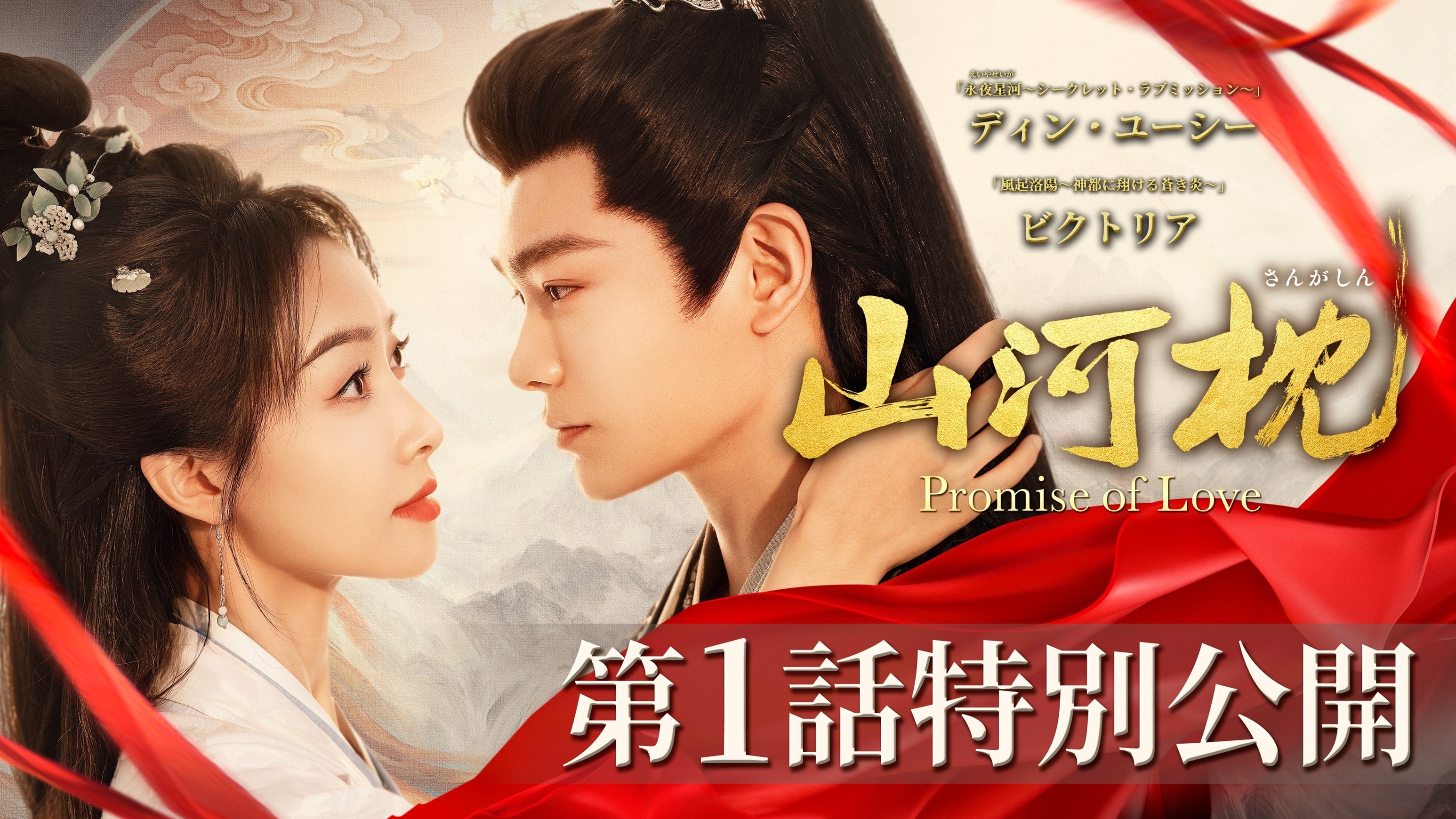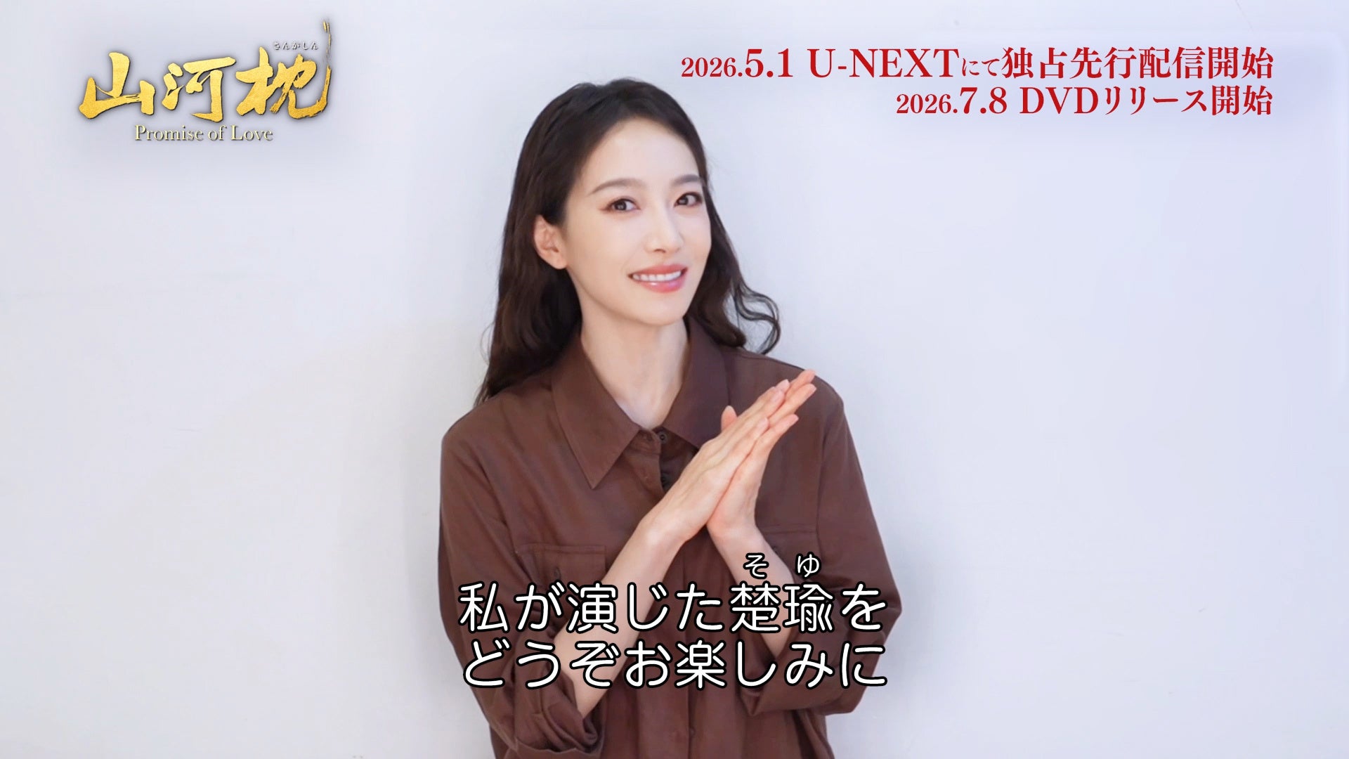 「永夜星河(えいやせいが)〜シークレット・ラブミッション〜」ディン・ユーシーと「風起洛陽〜神都に翔ける蒼き炎〜」ビクトリアが初共演!「度華年 The Princess Royal」原作者&「一念関山 -Journey to Love-」監督がタッグを組み、数々の放送・配信ドラマランキングで1位を獲得した話題の中国時代劇「山河枕(さんがしん)~Promise of Love~」がNBCユニバーサル・エンターテイメントジャパンの配給により、2026年5月1日(金)よりU-NEXTにて独占先行配信開始、また7月8日(水)よりDVD(セル&レンタル)リリース開始いたします。これを記念して、ドラマ本編第1話を本日より公式Youtubeで特別公開!また、ヒロイン・楚瑜(そゆ)を演じたビクトリアから日本の皆様へメッセージも到着しました!