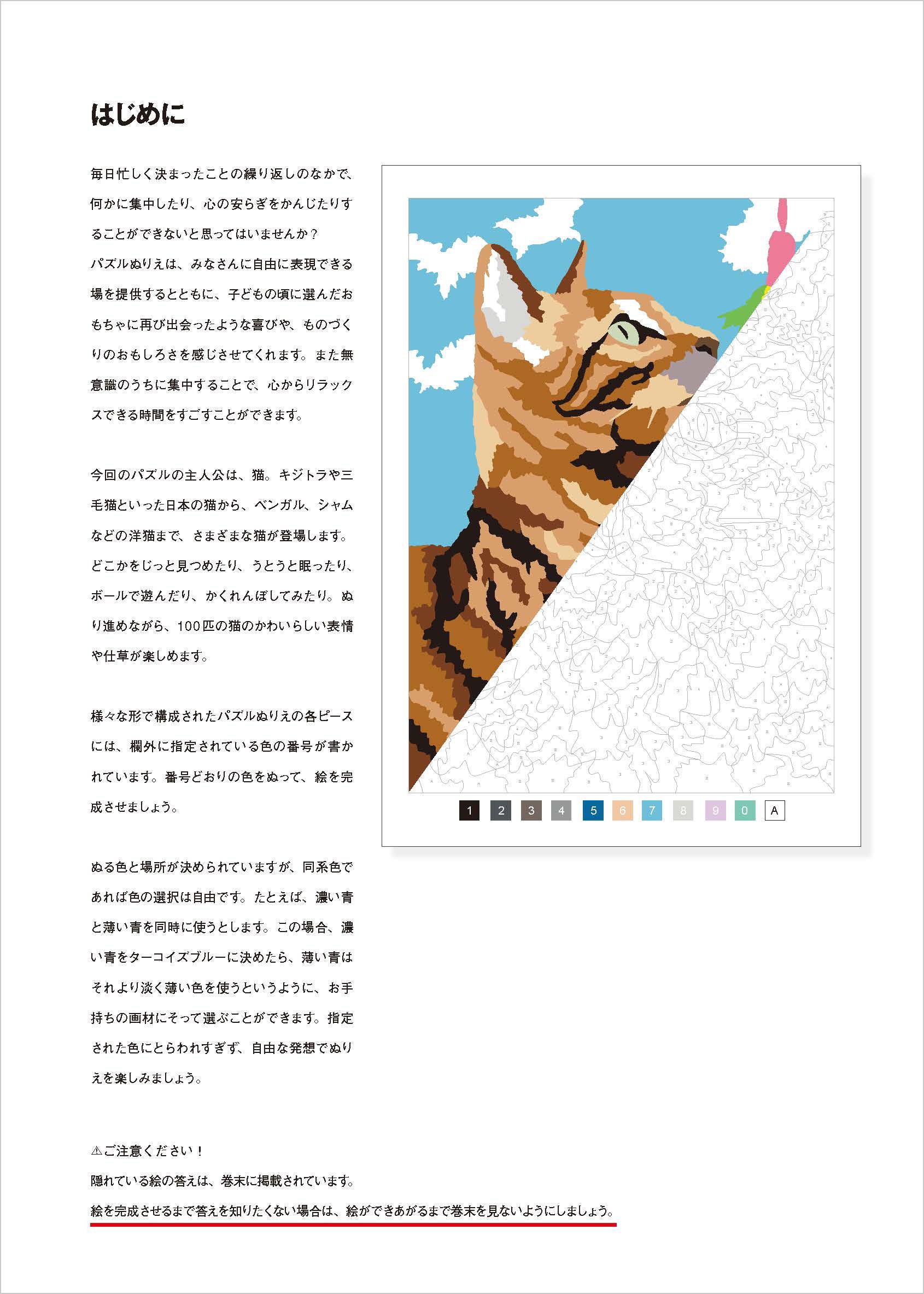 キュートな猫たちが浮かび上がる! パズルを解くような「ぬりえ」が楽しい、大好評シリーズ第9弾『100パズルぬりえ 9.キャット・ワールド』1月発売!!