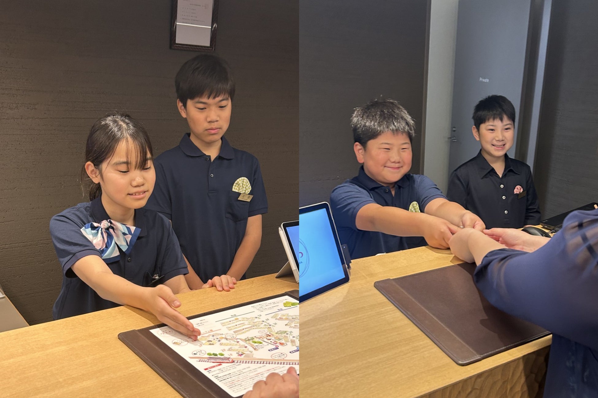 小学生専用制服の貸出し、チェックイン業務体験、バックヤードを含めた館内見学ツアー