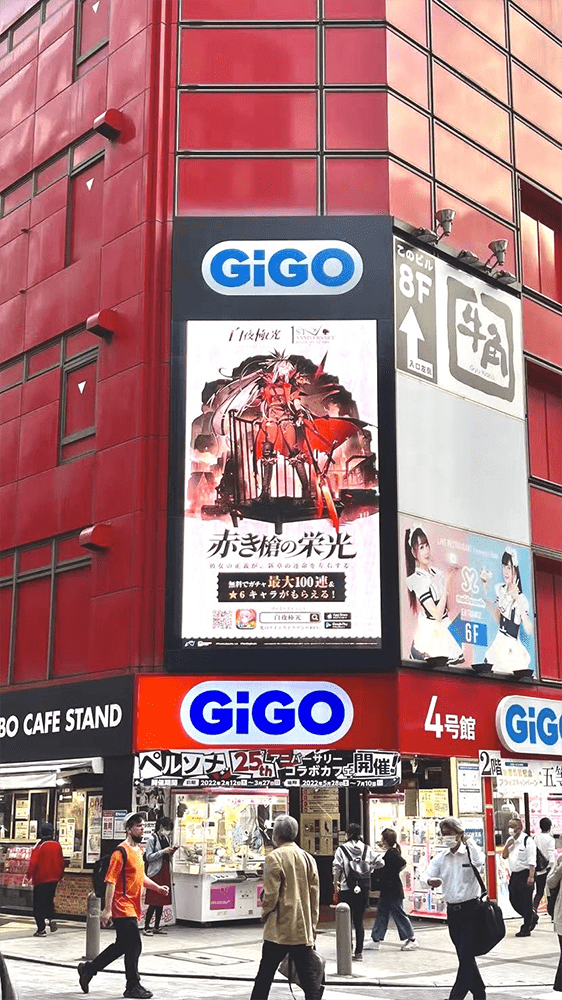『白夜極光』において、1周年記念アップデート「赤き槍の栄光」と題して、6月2日(木)より秋葉原のGIGOビジョンとラジオ会館ビジョンにおいて屋外ビジョン広告掲出を開始しました。