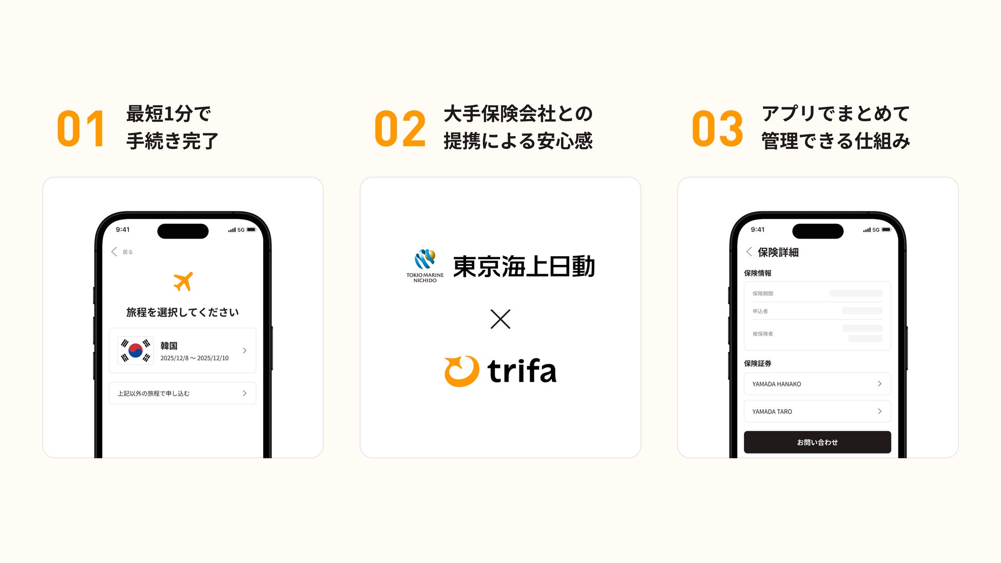 トリファの海外旅行保険は、アプリの使いやすさをそのまま活かし、加入までの手間を抑えることを重視しています。
