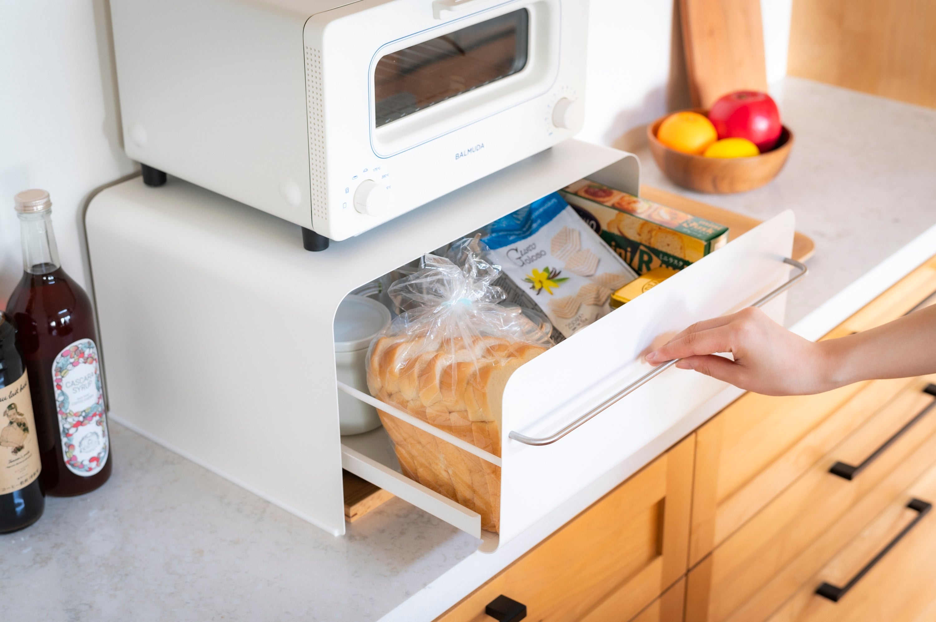 一般的なトースターが載るサイズ感なので、トースター回りのごちゃつき解消にも。高さに限りがあるキッチンボードの下に置いてスペースを有効活用することも可能です。