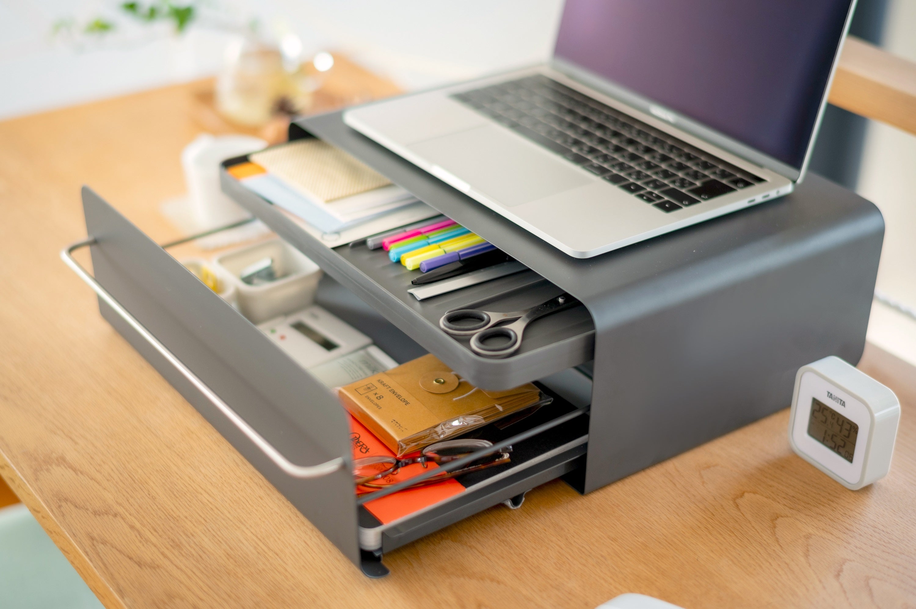 スタンドドロワーは、玄関の靴箱の上に置いても邪魔にならない縦型収納。