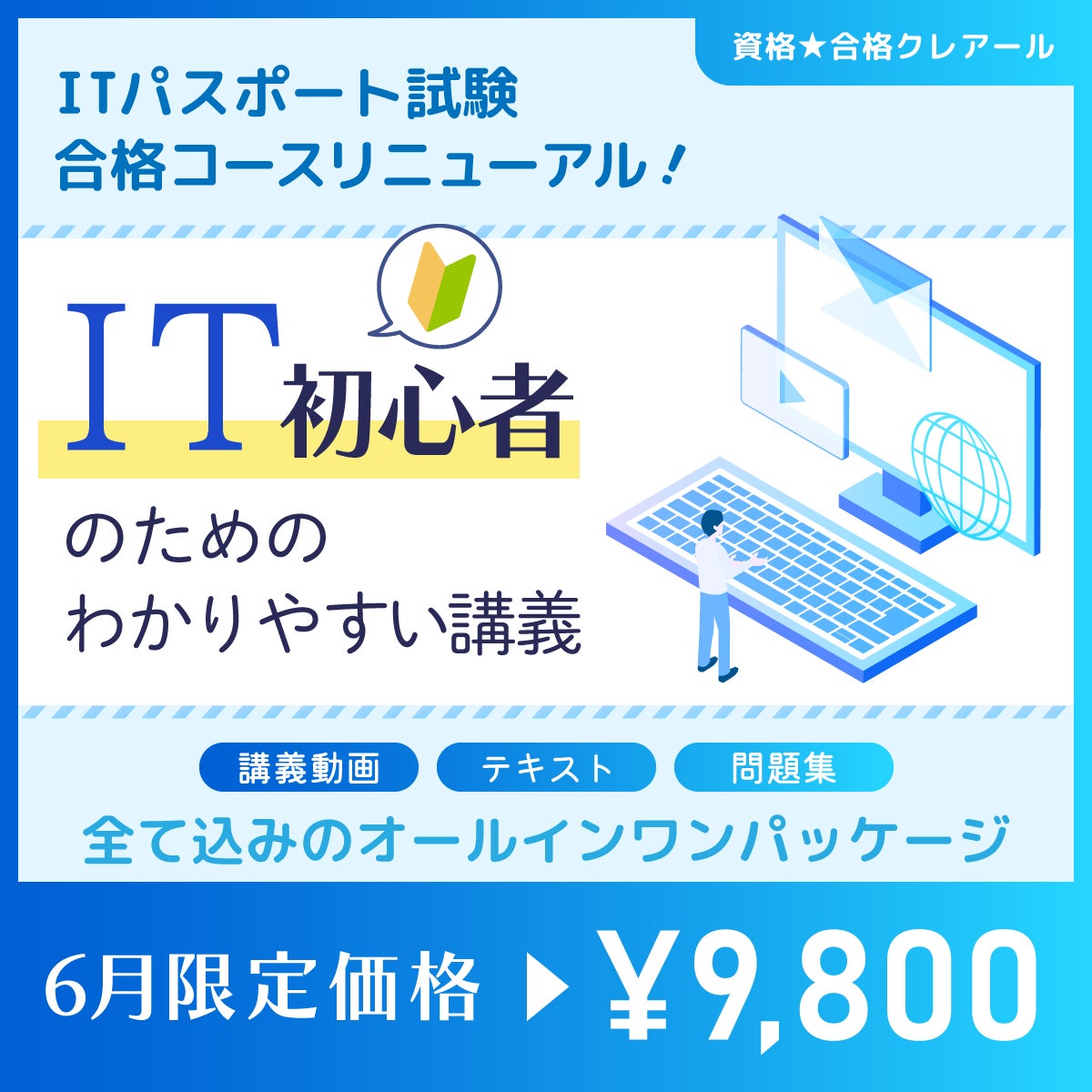 - ITパスポート試験合格コース 6月限定リニューアル記念 受講料9,800円(税込)