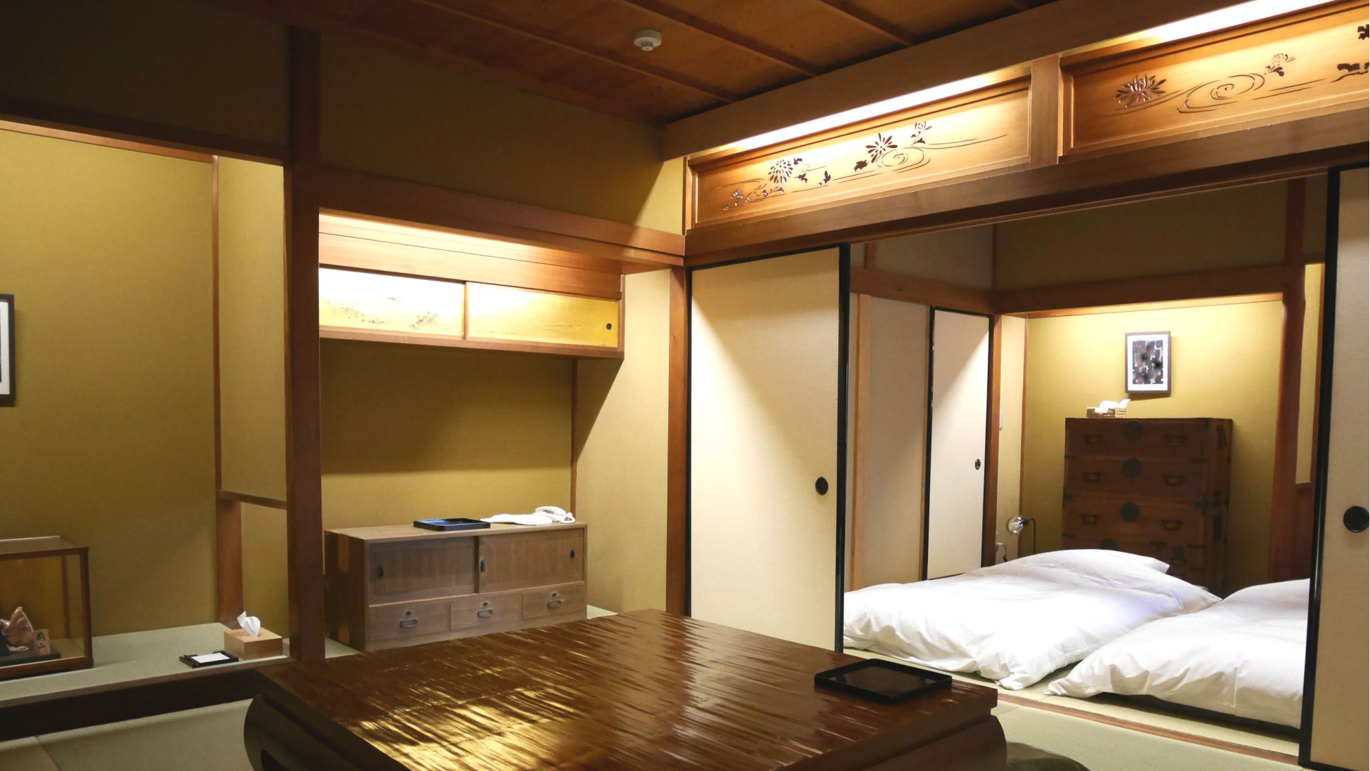 当館は、江戸時代から続く歴史を感じられる趣を残しつつ、個性的なお部屋にデザインされています。館内には貸し切り風呂や岩盤浴があり、日常の喧騒を忘れ心と体を休められるリトリート空間となっています。