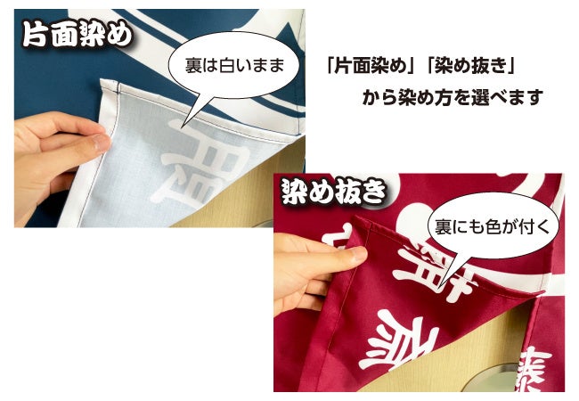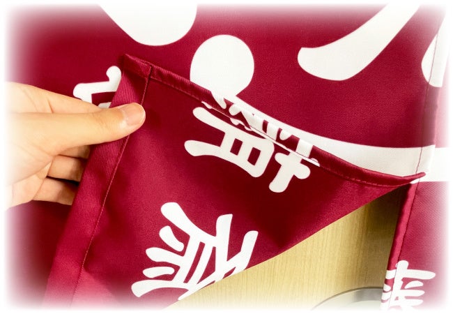 オーダーのれんドットコムでは、昇華転写捺染と呼ばれる「染め」の方法を使っていますので、発色も鮮やかに仕上がります。詳しくはこちらの動画をご覧ください。