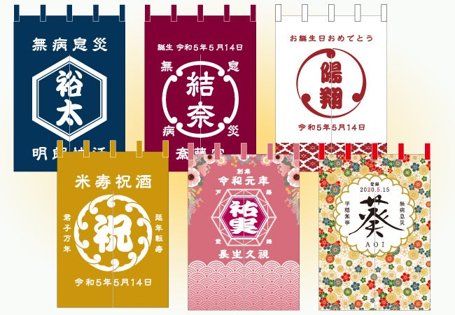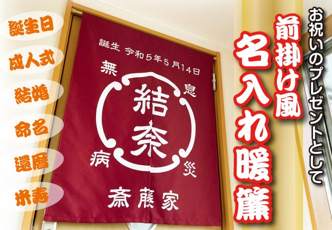 誕生日や成人式、還暦、米寿のお祝いにピッタリ!前掛け風のユニークな名入れ暖簾(のれん)がオーダーのれんドットコムに登場