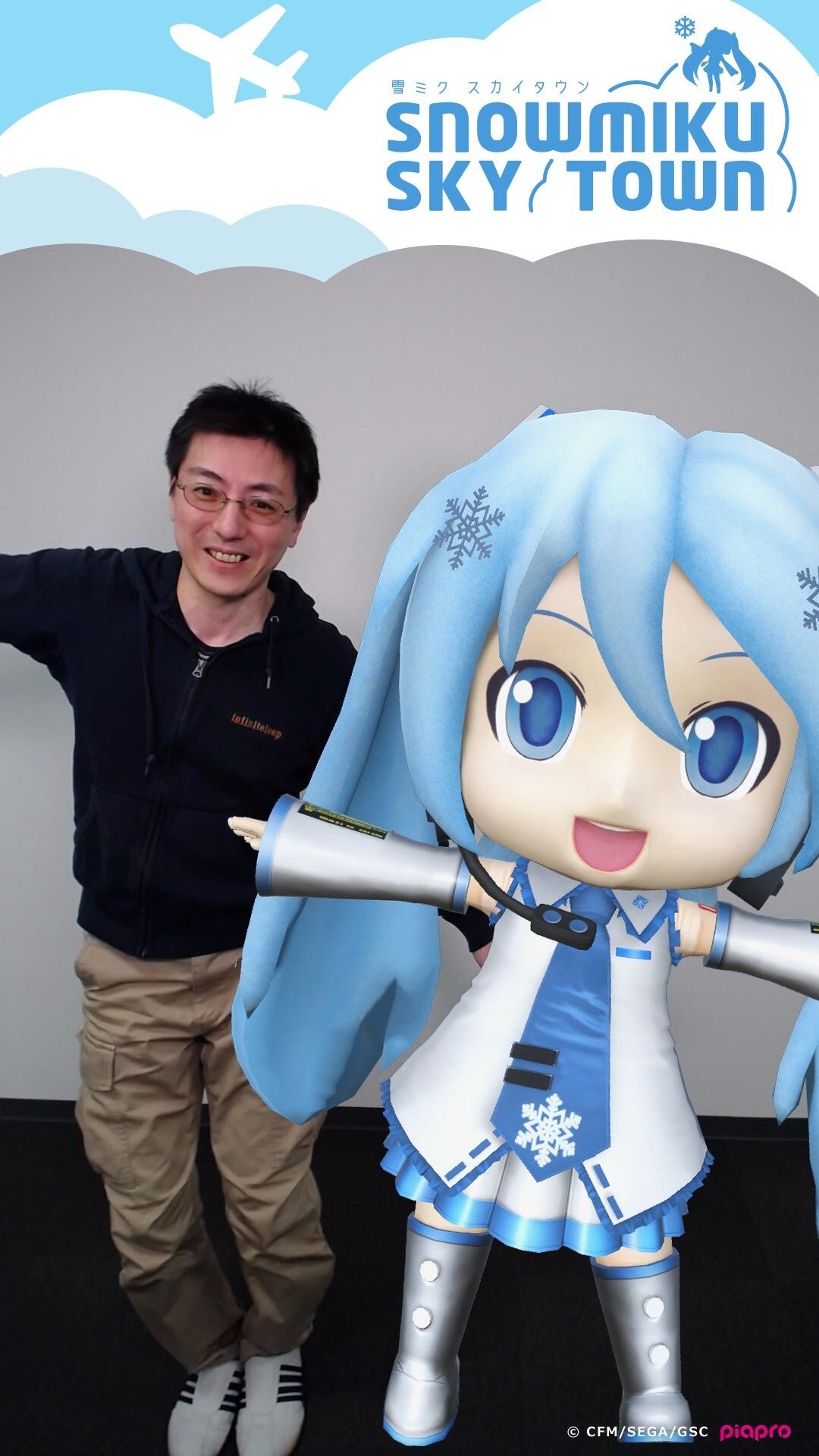 画像のように、「初音ミク MIKU LAND ver.」「雪ミクダヨー」や「ラビット・ユキネ」と一緒にバーチャル写真撮影が可能です♪