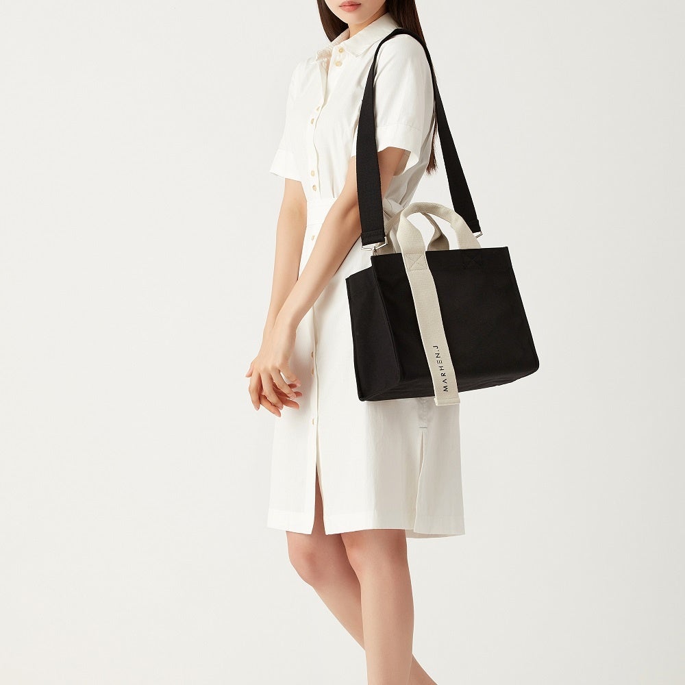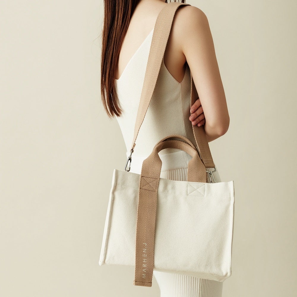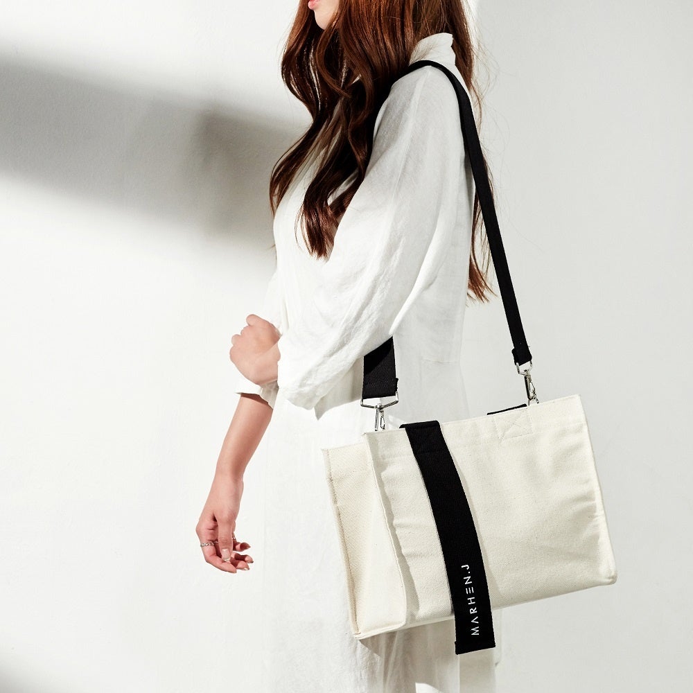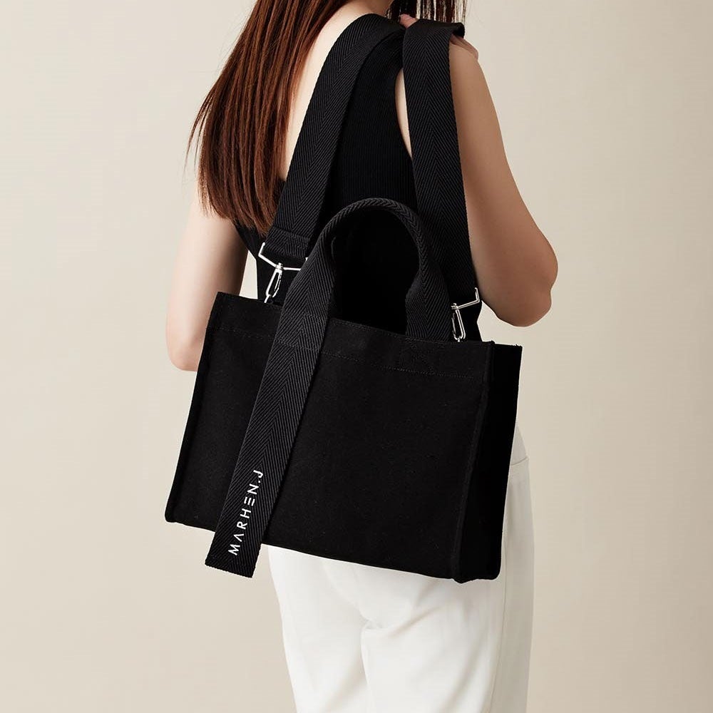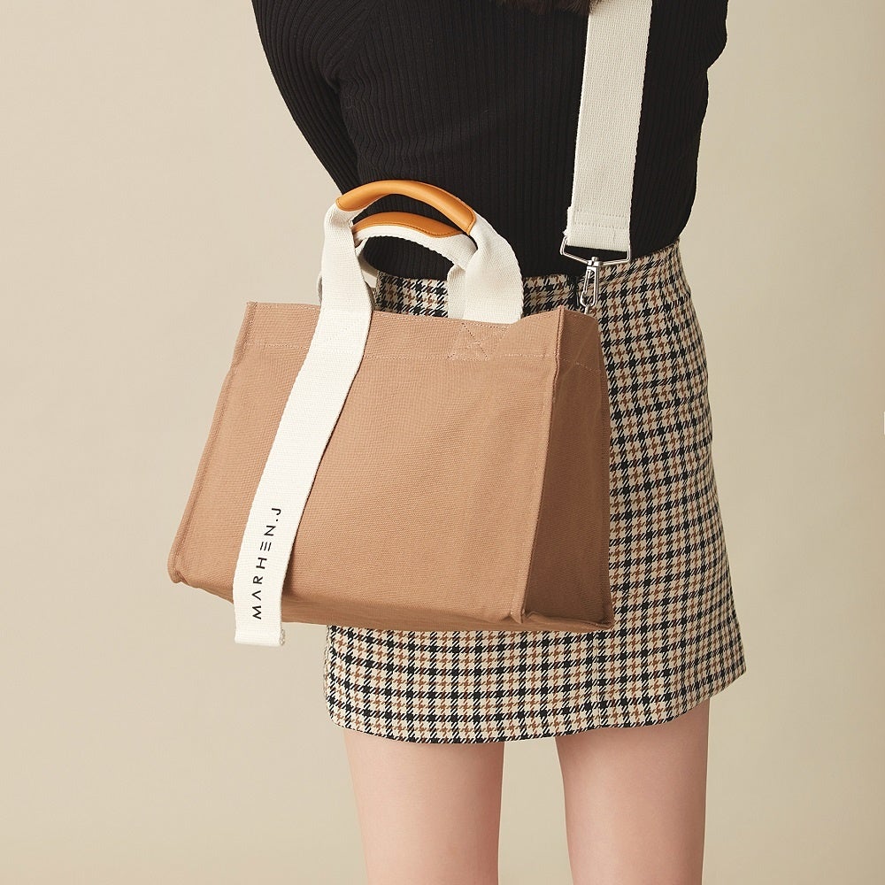 MARHEN.J ( マルヘンジェイ ) のシグネチャーアイテムである 「 RICO ( リコ ) 」 は、トート・ショルダー・クロスボディの 3 WAY で着用可能。広い収納スペースに加え、タンブラー専用ポケットなど機能性も兼ね備えている。