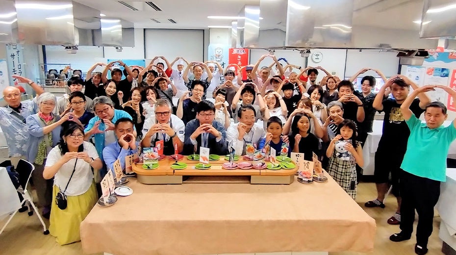本イベントは、「おいしいだけでなく、様々な視点からオーロラサーモンの魅力を感じていただきたい。」という目的で開催いたしました。今後もよりおいしく召し上がっていただくための商品開発はもちろん、様々な形で付加価値を高め、召し上がるお客様にも、生産や流通に携わるすべての人々にも、喜んでいただけますように、関係各社が力を合わせて精進して参る所存です。