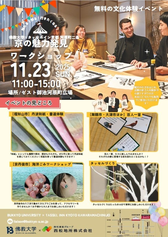 西松建設グループ西松地所株式会社が運営するタッセルイン京都 河原町二条(京都市中京区)は佛教大学と連携して、どなたでも参加できるイベントを2025年11月23日(日)、ゼスト御池にて開催します。