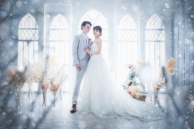 この冬は「Snow White」をテーマに透明感あふれるウェディングをお届けします。雪の加工を施した写真、キャンペーン限定の写真集、冬らしいデザインのグリーティングカードも注目。