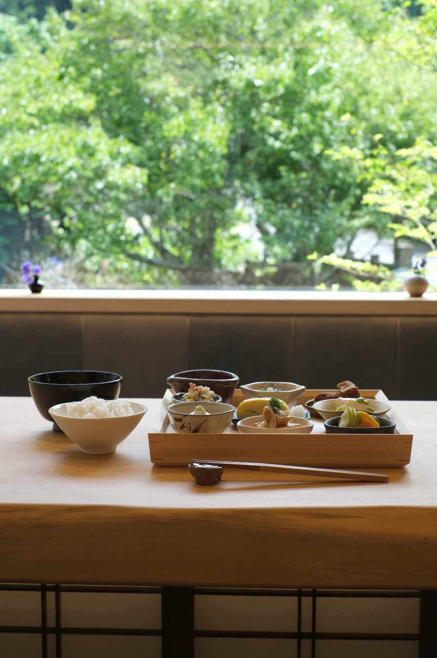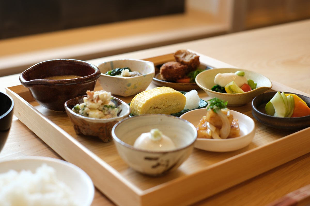 「泉ヶ谷 工芸ノ宿 和楽」の朝食会場である「和処 若松」にて、8月3日(土)より土日祝限定のランチ営業が始まります。ランチでは工芸ノ宿 和楽の朝食メニューをお召し上がりいただけます。