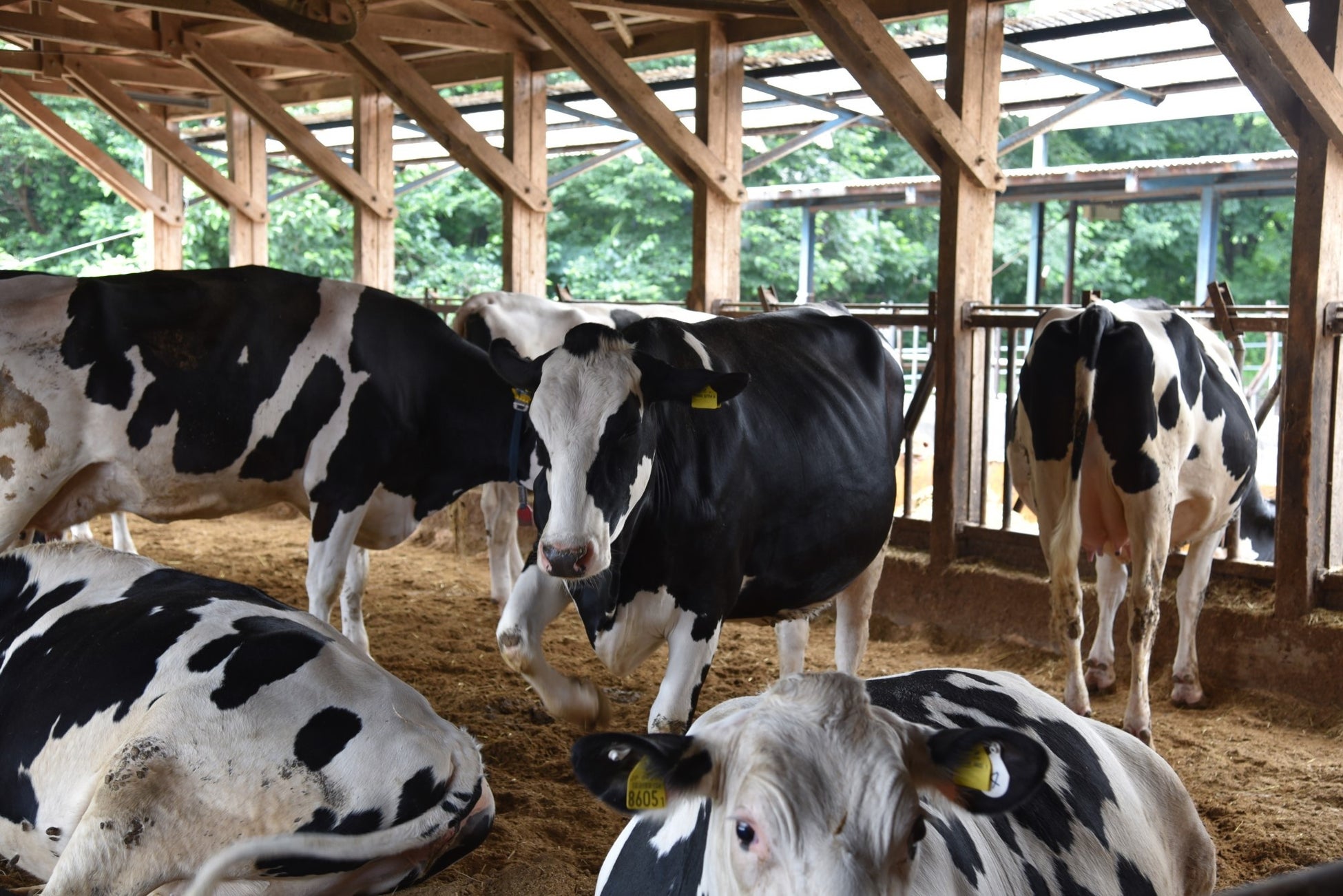 ①自然と130年以上共生し続ける中、自社畑の牧草・コーンにより乳牛を育て、牧場内の牧草を食べた牛の排泄物はたい肥原料の一部とし、再び土づくり、牧草づくりへと循環させる「持続可能な循環型酪農」に取り組み、環境負荷削減、食の安全、社会的価値の創造に対しひとつの回答を示すことを目標としています。