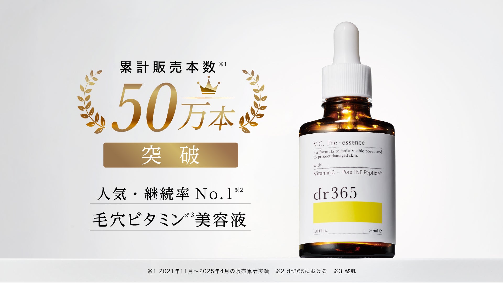 株式会社dr365(所在地:東京都渋谷区渋谷)が展開するスキンケアブランド「dr365(ドクターサンロクゴ)」は、さまざまな毛穴悩みに多角的にアプローチし、継続使用率90%以上※1という高いリピート率を誇る毛穴ビタミン美容液「V.C. プレエッセンス N」の累計販売本数が50万本※2を突破したことをお知らせいたします。