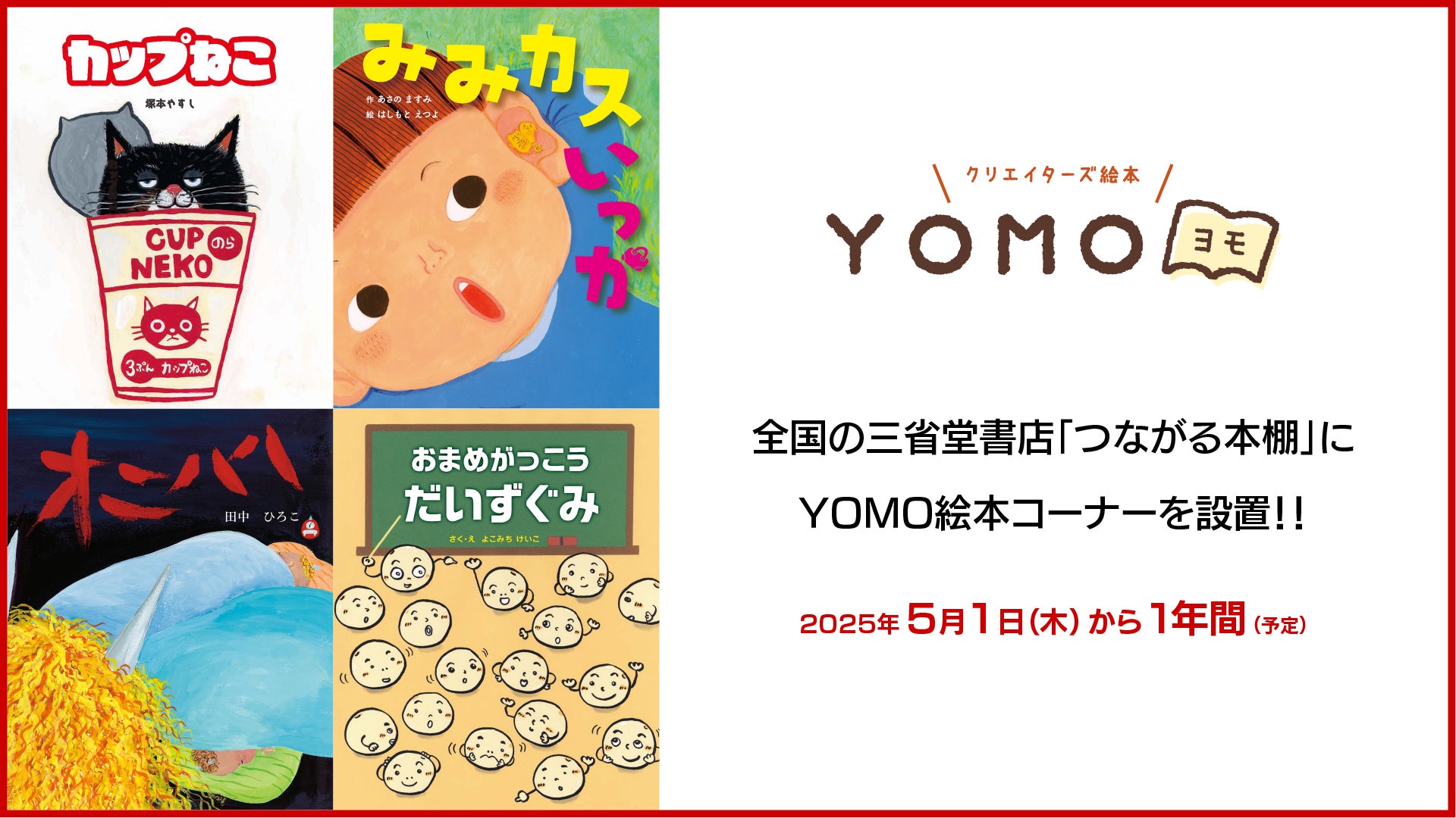 株式会社光陽社(本社:東京都文京区湯島 代表取締役:犬養 岬太)の100%出資子会社「株式会社ニコモ(絵本通販サイト「YOMO」を運営)」は、全国の三省堂書店※が展開するオリジナルの書棚「つながる本棚」に、当社が運営するクリエイターズ絵本「YOMO」から選りすぐりの絵本や新刊絵本を2025年5月1日(木)より設置することをお知らせいたします。 ※一部店舗を除く