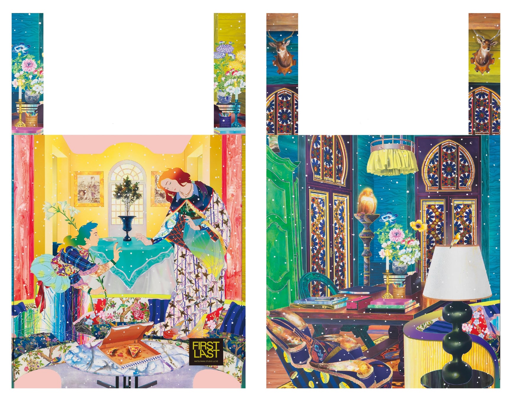 松山作品を全面に配した、会場限定の展覧会オリジナル ビッグサイズエコバッグと入館チケットがセット