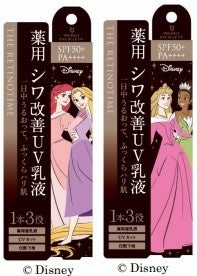 シワを改善する日中用の薬用UV乳液です。アリエル&ラプンツェル、オーロラ姫&ティアナの2デザインで展開いたします。