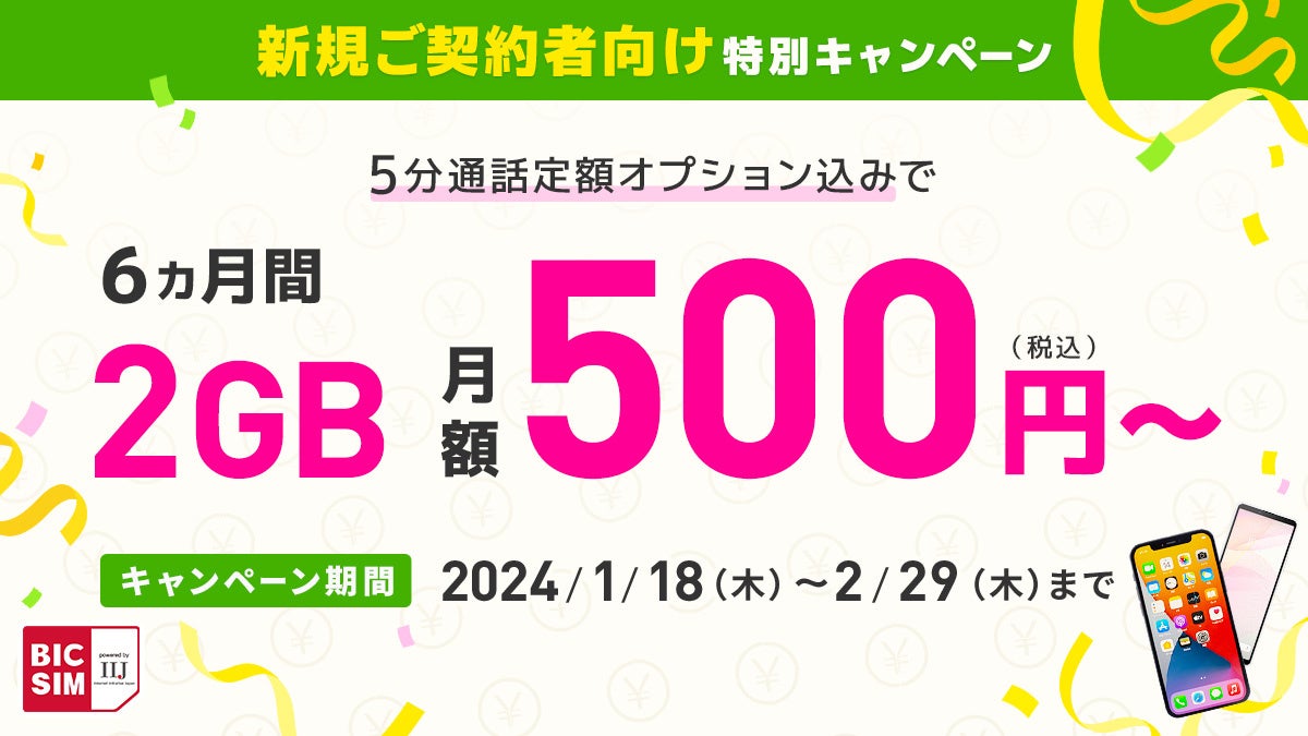 【BIC SIM】ギガプランの月額料金を440円割引、通話定額オプションの月額料金を410円割引のキャンペーンを開始
