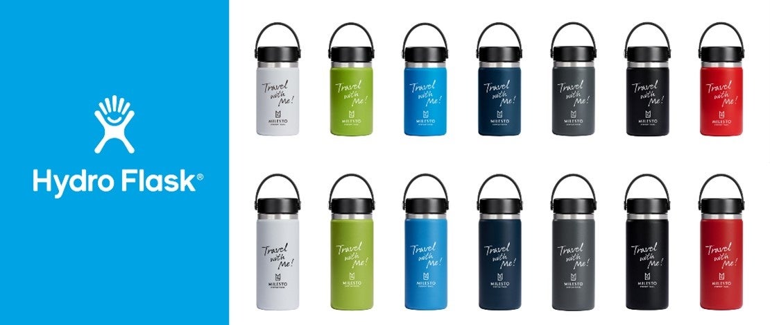 トラベルブランドMILESTOとHydro Flaskが初めてのコラボ!大人気のワイドマウスボトルにMILESTOオリジナルデザインが新登場