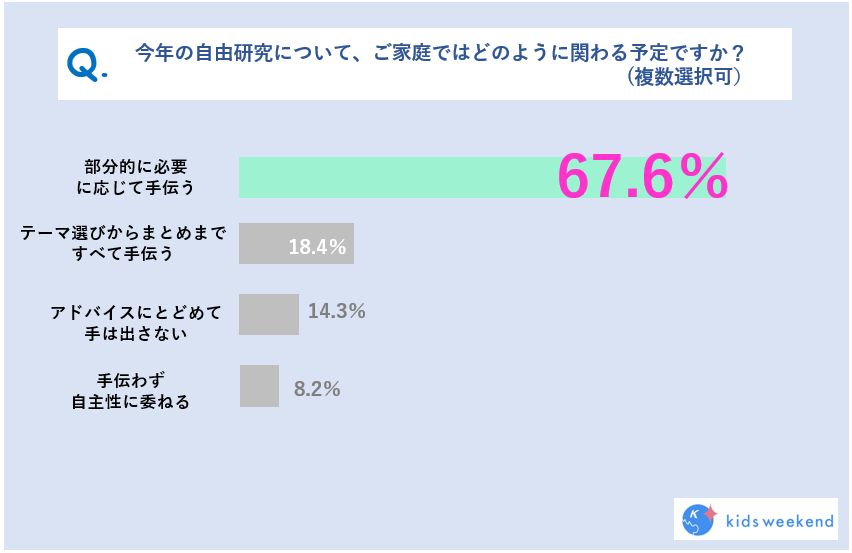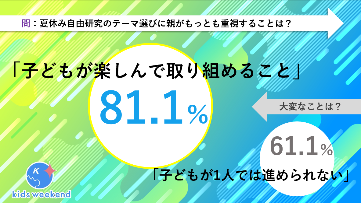 本調査にご協力してくださったキッズウィークエンド会員の回答からは、忙しいなかにも夏休みの自由研究をサポートしつつ、お子さまの探究心を育て今後にもつながる前向きな機会と考えていることがわかりました。