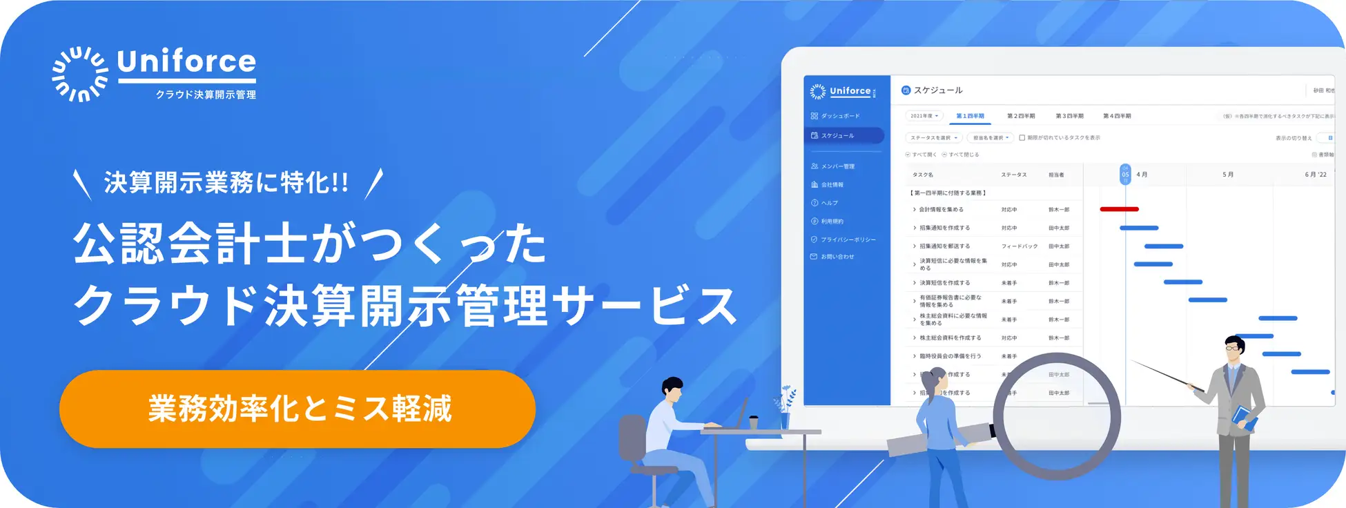 当社は、コーポレートカバナンスに特化したSaaS事業と、公認会計士等によるコンサルティング事業を展開しております。現在SaaS事業においては、決算開示業務の業務改革を促進する「Uniforce 決算開示管理サービス」、IPO準備企業の上場支援を行うクラウドサービスの「Uniforce IPO準備クラウド」を提供しております。