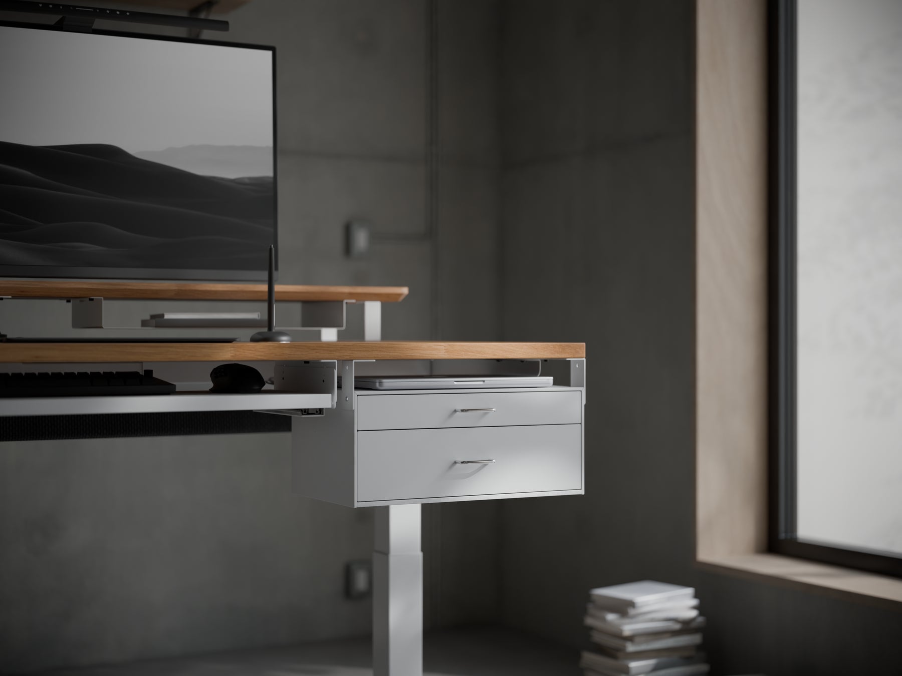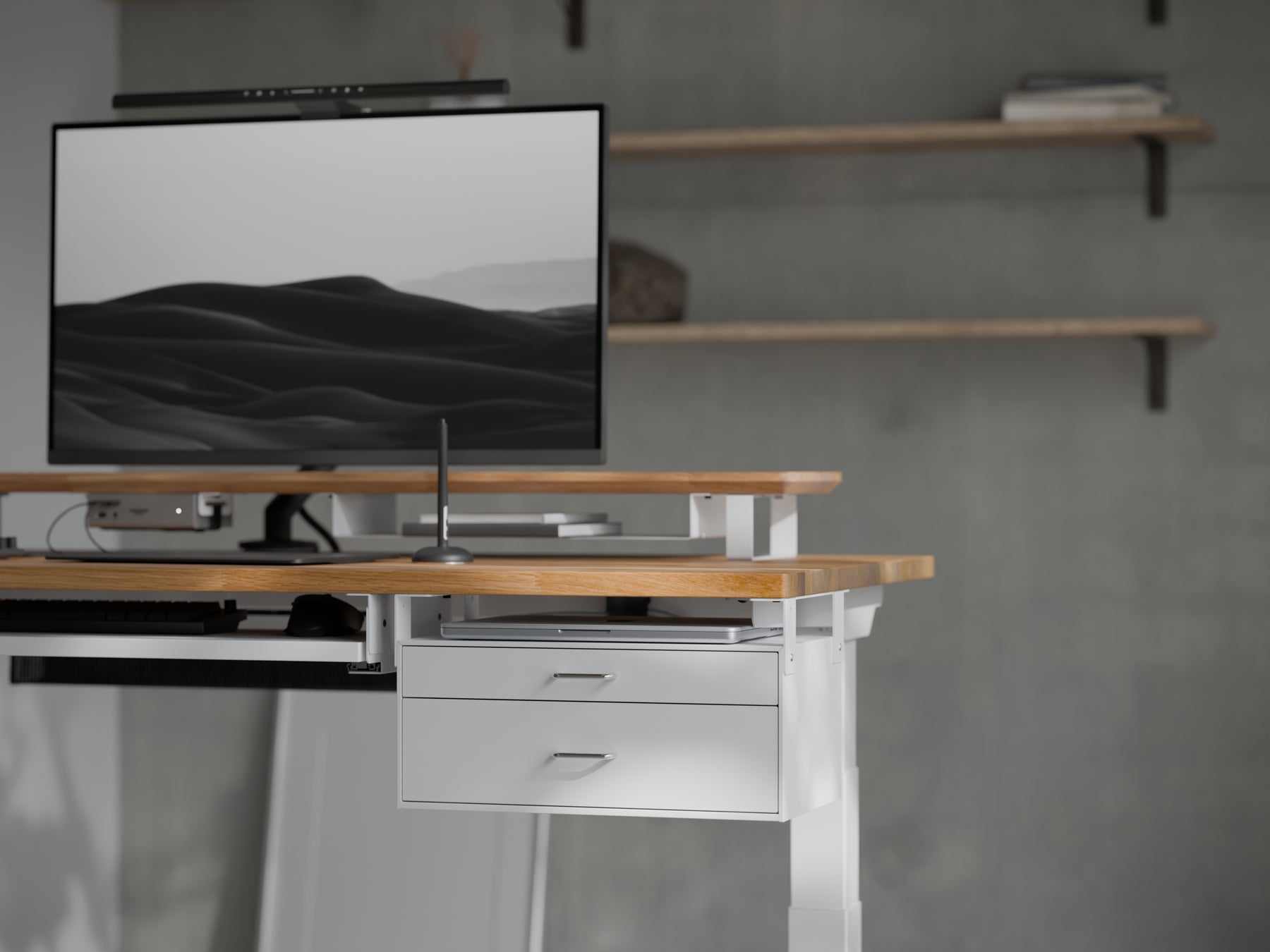 Drawer Two Plusは10cmの深型の引き出しと、5cmの浅型の引き出しを備えたデスクに取り付ける引き出しです。