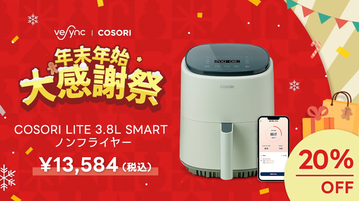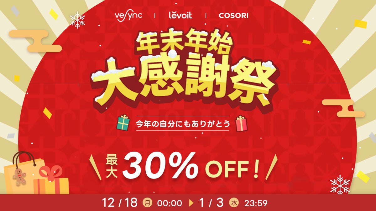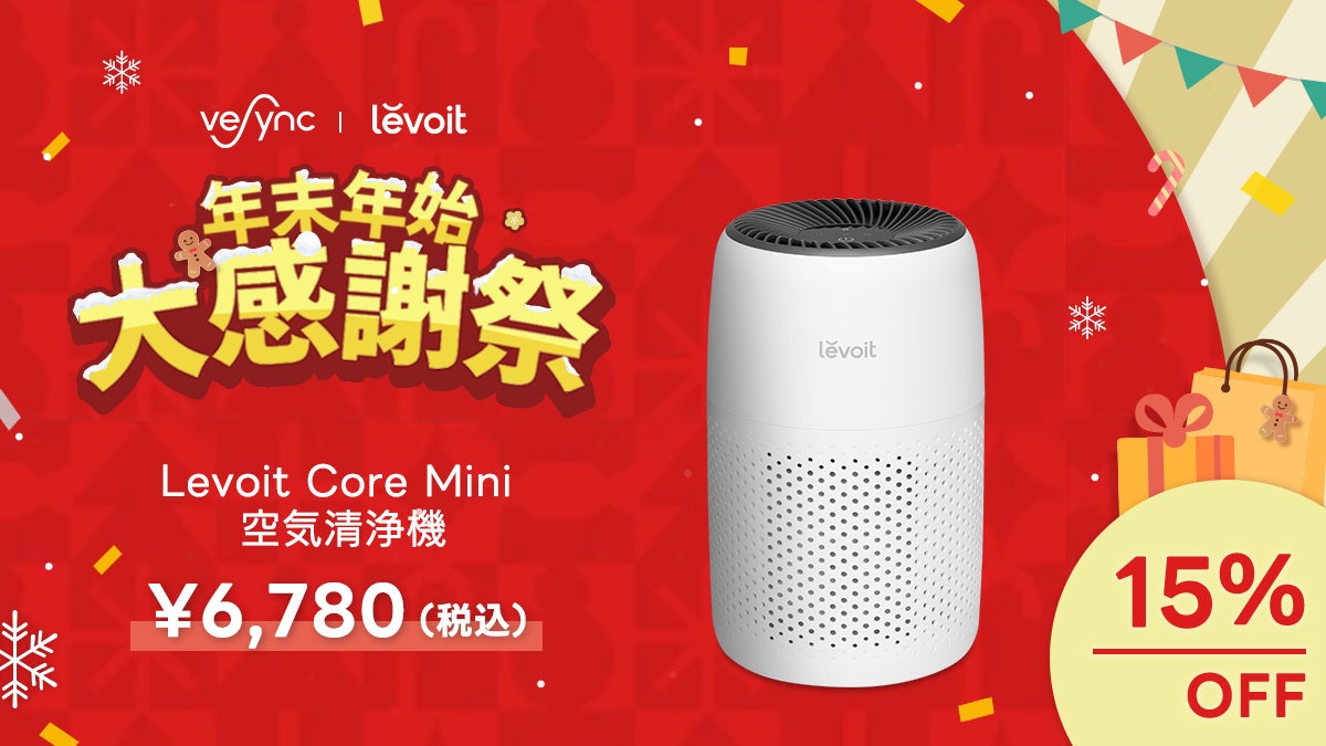 アメリカ発の小型家電メーカーのVeSync(ウィーシンク) Co., Ltd(本社:アメリカ カリフォルニア州)は、2023年12月18日(月)~2024年1月3日(水)の間、人気製品「Levoit空気清浄機」「COSORIノンフライヤー」を始め、最大30%OFFの「年末年始大感謝祭」セールをVeSync公式ストアにて開催いたします。
