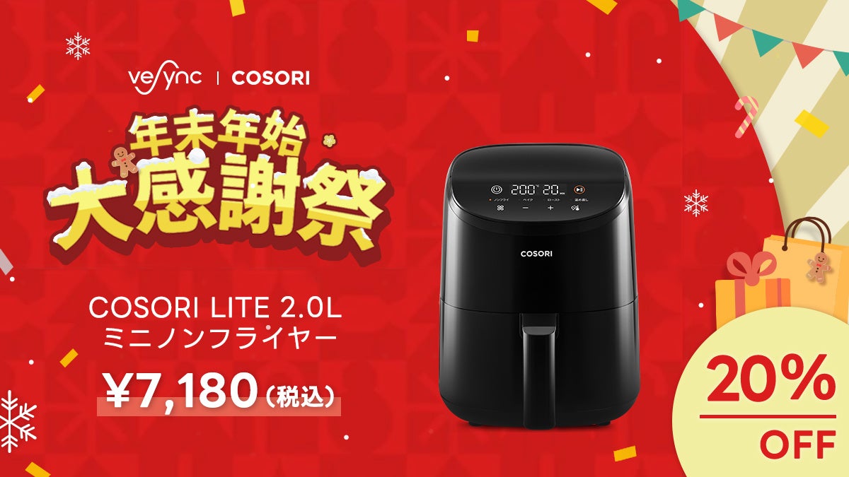 皆様がより快適な暮らしで良い年を迎えますよう、VeSyncはCOSORI製品とLevoit製品が最大30%OFFのお得な価格でご提供いたします。よりヘルシーな食生活を送りたい方におすすめのCOSORIノンフライヤーや、冬の室内空気改善をしたい方におすすめのLevoit空気清浄機が買い求めやすくなっております。また、暖冬の乾燥対策を検討している方には一部の加湿器商品がさらに50%OFF、ぜひこの機会にご検討ください。