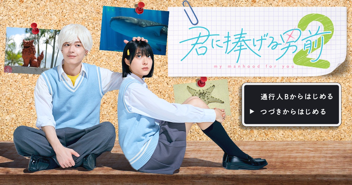 漫画アプリ・GANMA!で連載中の文之助による人気コミック「君に捧げる男前」は、高校でのモットーが「平穏に過ごすこと」である前田藍がイケメンの後輩男子・矢野光に突然告白されたことからはじまる、“男前女子×犬系男子”の凸凹青春ラブストーリー。2024年5月より配信された実写版第1弾は配信開始直後から反響を呼び、公式TikTokアカウント(@drama_kimisasa)のフォロワー数は2025年2月現在で10万人を超え、ファンからは第2シーズンへの期待の声が多く寄せられていた。