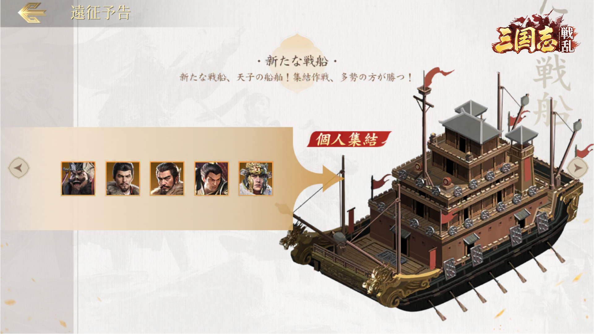 11月より、『三国志:戦乱』では第三回遠征戦場も開始する予定です。全新マップ、初めての水域対抗など新しい挑戦となります。内容予告詳細はゲーム内のお知らせをご確認ください。