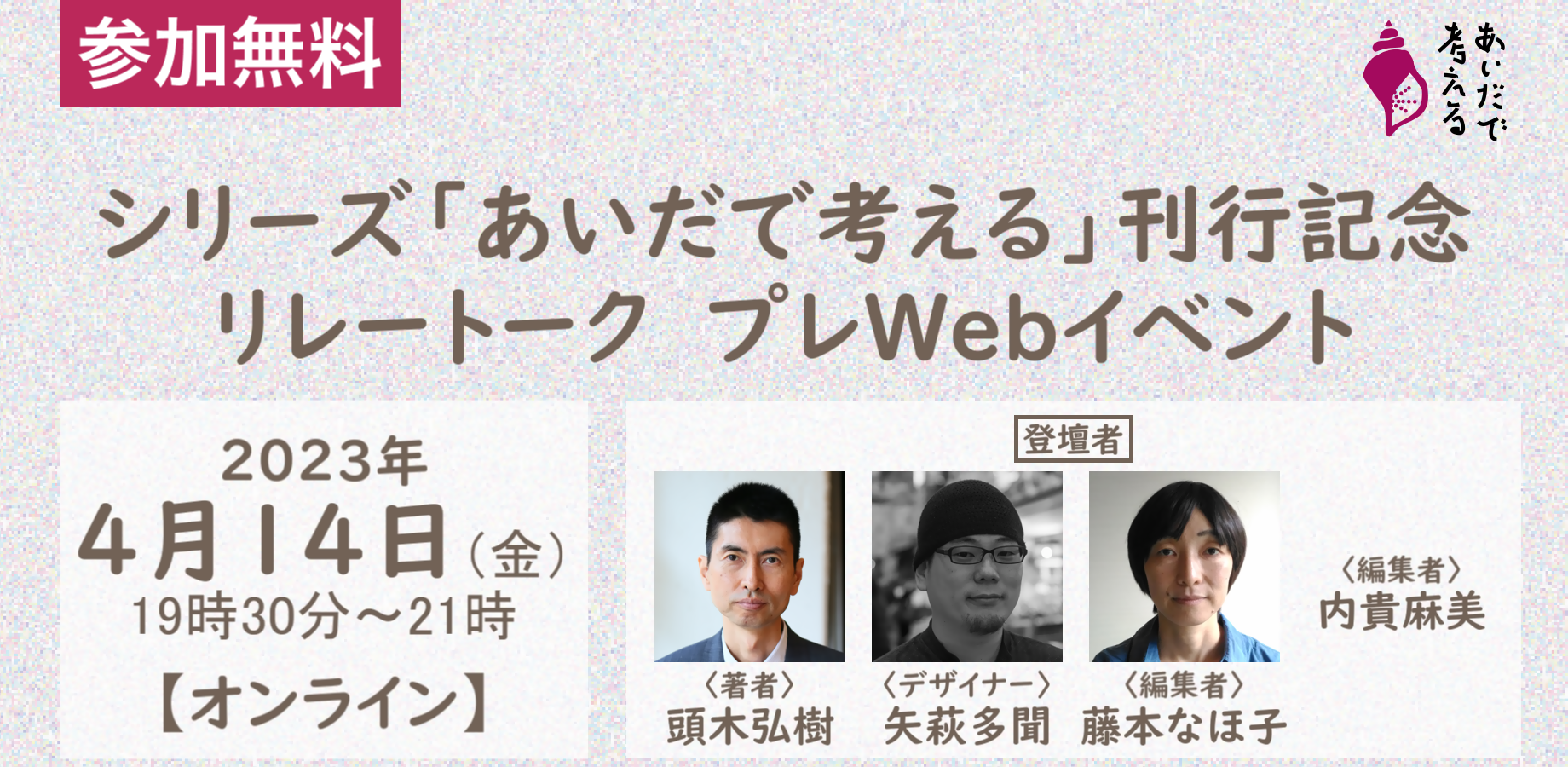 また連続イベントに先駆け、著者・ブックデザイナー・編集者が揃って登壇し【あいだ】について語る無料のプレWebイベントの開催が決定しました。