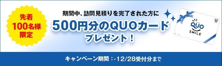 キャンペーン期間中訪問見積りを完了いただいたお客様に、先着100名で、500円分のQUOカードプレゼント