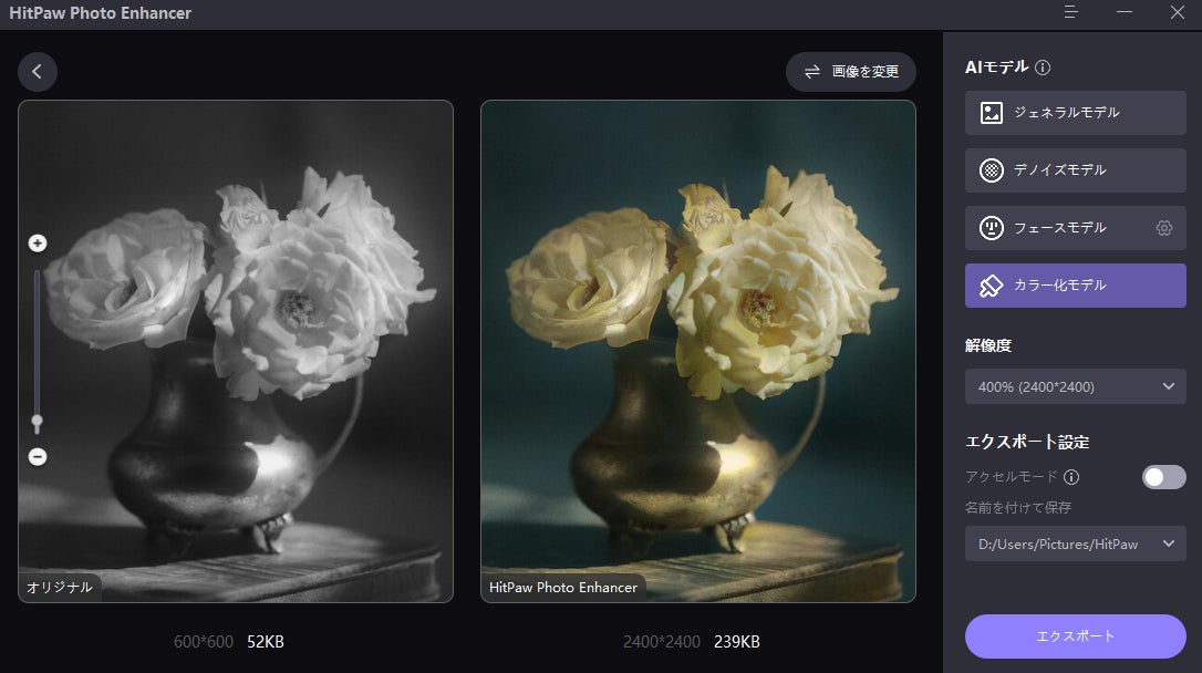 - 優れたAIカラー化機能で、古い写真に命を吹き込み生き生きと色付け可能