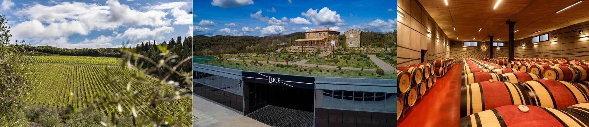 テヌータ・ルーチェは、1995年に、ヴィットリオ・フレスコバルディとロバート・モンダヴィという、ワインへの情熱と卓越したワイン醸造の技術を持った、20世紀を代表する2人のワイン醸造家によって創設されたワイナリーです。前例のないユニークなイタリアワインを作ろうという情熱のもと、モンタルチーノで初めて「メルロー」と「サンジョヴェーゼ」のブレンドで造られ、スーパータスカンワインとして名を知られました。光輝く太陽のロゴが印象的なテヌータ・ルーチェは、モンタルチーノの南西に位置し、標高約230~420mと最も標高の高い畑の一つから造られます。太陽が降り注ぐ南向きの畑は、ブドウをゆっくりと熟成させ、凝縮した力強いブドウが生み出されます。