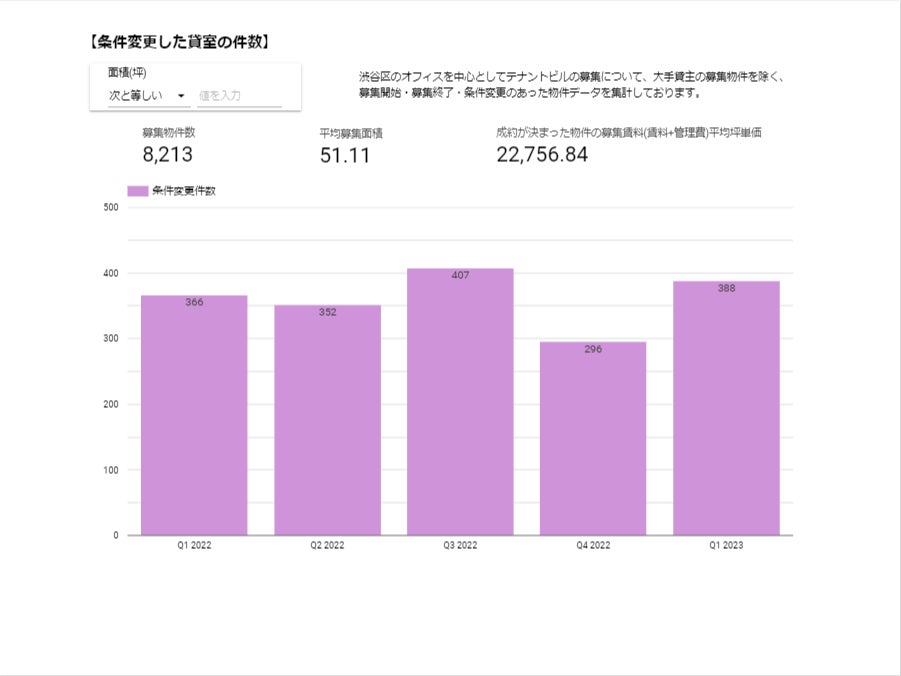 2022年1月1日~2023年3月末において、弊社グループサイト内で物件の募集・募集の終了・賃料など条件の変更があった物件が対象に集計。